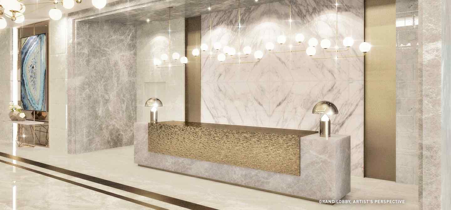 Gem Residences' grand lobby is designed to impress! Elegant and inviting, the lobby offers an appealing space perfect for lounging or welcoming guests.
